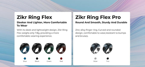 وفي الوقت نفسه، سيتم إطلاق خاتم الجيل الثاني بمواد وألوان متنوعة تناسب جميع أعمار المستهلكين. أول نسختين من الحلبة، Zikr Ring Flex و Zikr Ring Flex Pro، ستتوفران في الدفعة الأولى. كما ستتوفر الحلقة الأساسية بأربعة ألوان: الأخضر الزمردي، والأزرق الفاخر، والأسود الفلكي، والقهوة، بينما تتميز حلقة Pro بحلقة من السبائك، وأزرار من السيراميك لإضفاء لمسة أكثر دفئاً، ووجه مطلي بالألوان لرفاهية عالية التقنية يشعر. الألوان حتى FOH وذهب الشمبانيا.
