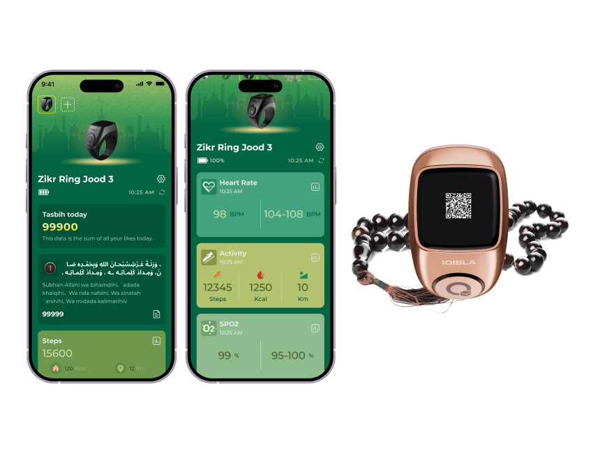 The Ring Displays The QR CodeFor The iQIBLA Life App.